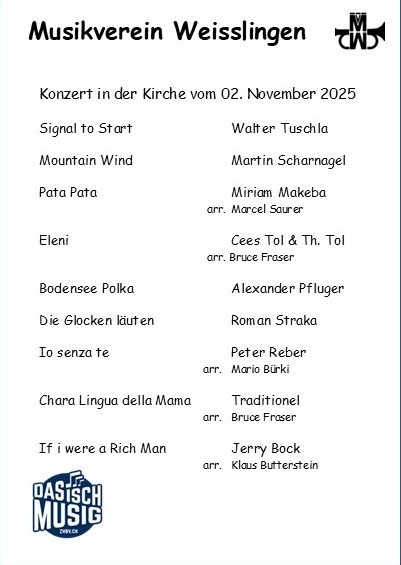 Wir wünschen ihm gutes Gelingen und viel Freude beim Musikverein Weisslingen.